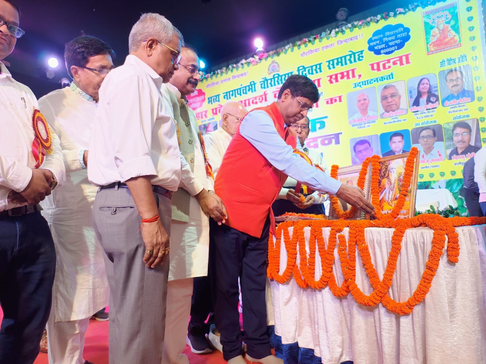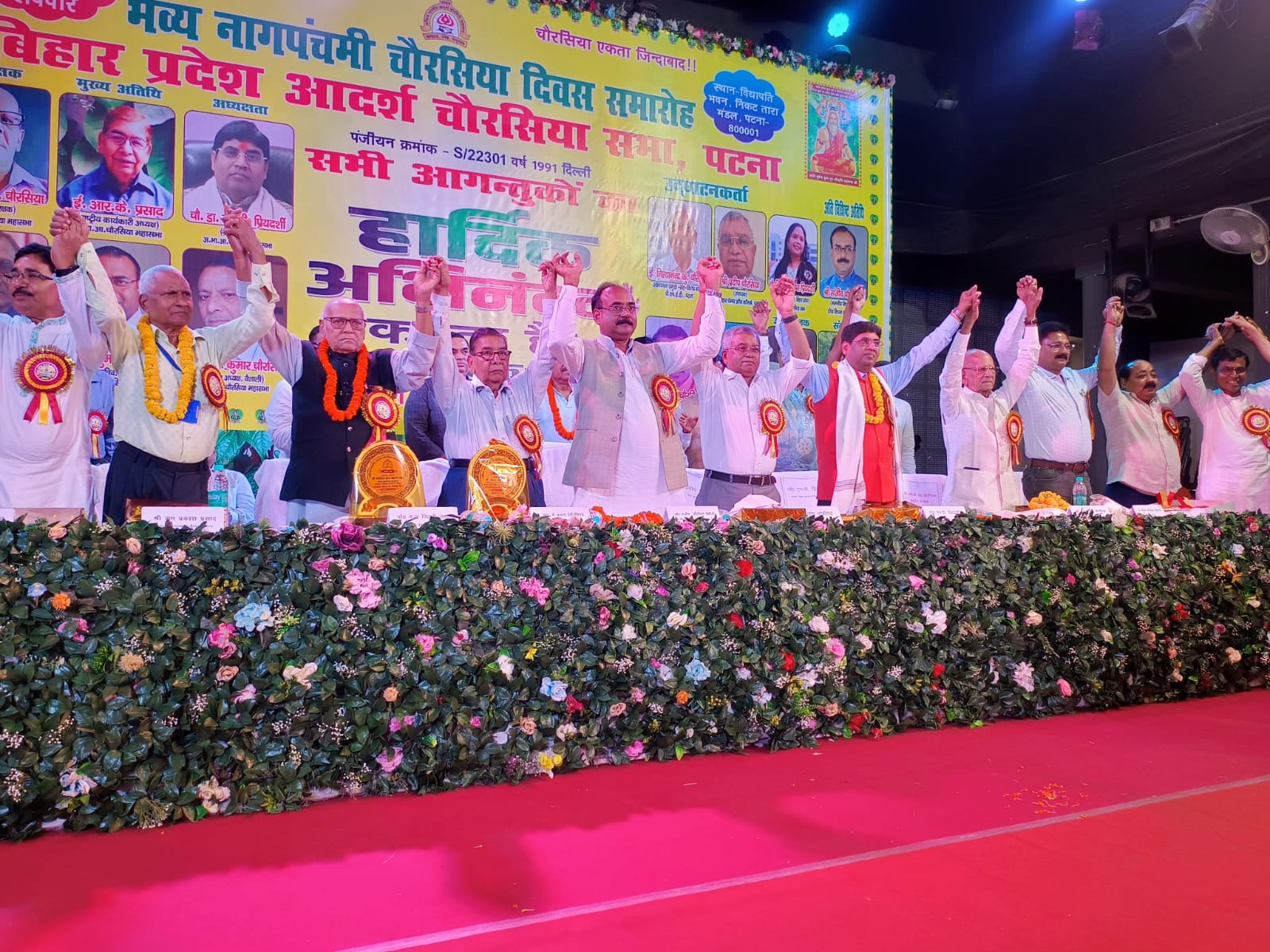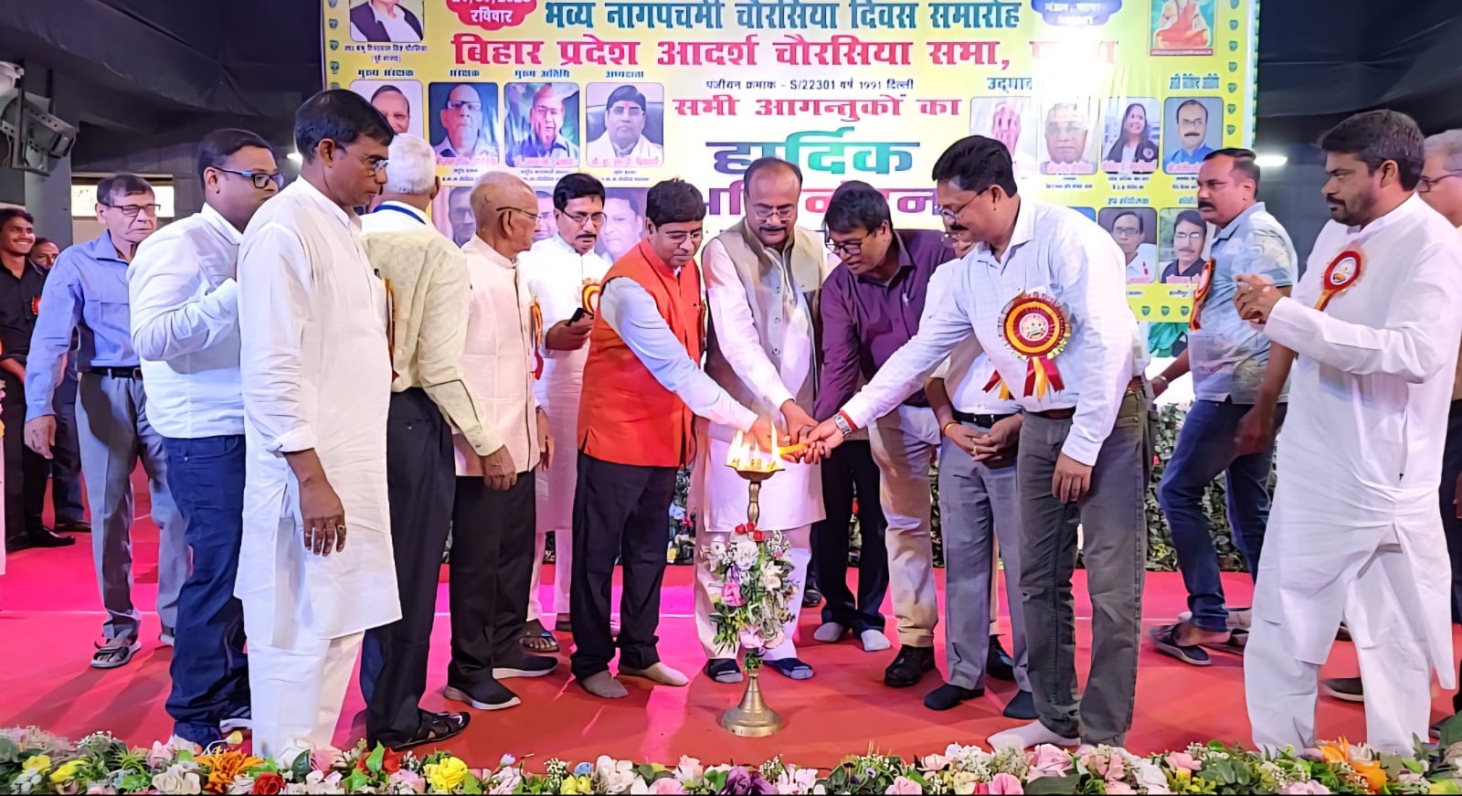 अखिल भारतीय आदर्श चौरसिया महासभा, दिल्ली की प्रदेश इकाई के नेतृत्व में चौरसिया समाज के सबसे महत्वपूर्ण “सामाजिक कार्यक्रम” नागपचमी महापर्व सह चौरसिया दिवस, का भव्य शुभारंभ पटना के विद्यापति भवन के सभागार में महासभा के इं. नित्यानंद प्रसाद चौरसिया,प्रदीप चौरसिया,इं. आर के प्रसाद,विधायक संजीव चौरसिया और बिहार प्रदेश आदर्श चौरसिया सभा के प्रदेश अध्यक्ष डॉ एनपी प्रियदर्शी ने सयुंक्त रूप से दीप प्रज्वलित कर किया….इस समारोह में पूरे बिहार के हजारों की संख्या में चौरसिया समाज के लोगों ने हिस्सा लिया…दीघा विधायक संजीव चौरसिया ने कार्यक्रम को संबोधित करते हुए कहा कि चौरसिया समाज में राजनीतिक चेतना बढ़ाने की जरूरत है। आबादी के अनुसार समाज को टिकट मिलना चाहिए। उन्होंने राजनीतिक पार्टियों से चौरसिया समाज को अधिक से अधिक सीटे देने की अपील किया।