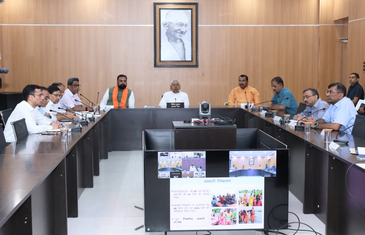 बैठक में विकास आयुक्त सह आपदा प्रबंधन विभाग के अपर मुख्य सचिव श्री प्रत्यय अमृत ने मुख्यमंत्री को बाढ़ प्रभावित क्षेत्रों में राहत एवं बचाव कार्यों की अद्यतन स्थिति की तथा नदियों के जलस्तर के संबंध में विस्तृत जानकारी दी। उन्होंने बताया कि अधिक वर्षापात के कारण गंगा नदी के किनारे के 10 जिले भोजपुर, पटना, सारण, वैशाली, बेगूसराय, लखीसराय, मुंगेर, खगड़िया, भागलपुर एवं कटिहार विशेष रूप से प्रभावित हुये हैं। बाढ़ से इन 10 जिलों के 54 प्रखंडों की 348 पंचायतों की 25 लाख आबादी प्रभावित हुई है। एन०डी०आर०एफ० की 7 टीमें और एस०डी०आर०एफ० की 9 टीमें राहत एवं बचाव कार्य में जुटी हुई हैं। 60 मोटर बोट और 1233 नाव लगातार कार्यरत् हैं। अब तक 52 हजार 573 पॉलीथीन शीट और 1800 सूखा राशन पैकेट प्रभावित लोगों के बीच वितरित किया गया है। बाढ़ राहत कैंपों में प्रभावित लोगों के लिए मानक संचालन प्रक्रिया (एस०ओ०पी०) के अनुसार सारी व्यवस्थाएं की गई हैं। अभी तक सामुदायिक रसोई केंद्र में 13 लाख से अधिक लोगों को भोजन कराया जा चुका है। जानवरों के लिए पशु चारा एवं चिकित्सा की व्यवस्था की गई है। आपदा प्रबंधन विभाग राहत एवं बचाव कार्यों की प्रतिदिन समीक्षा कर स्थिति पर नजर बनाए हुए है। बाढ़ प्रभावित लोगों को आनुग्रहिक राहत राशि (जी०आर०) वितरण करने के लिए जिलाधिकारी को सूची बनाने का निर्देश दिया गया है। उन्होंने बताया कि राज्य में अच्छी वर्षा के कारण किसानों को फायदा हुआ है। राज्य में अब तक 93 प्रतिशत धान की रोपनी हो चुकी है।