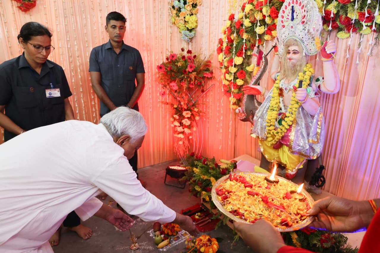 मुख्यमंत्री श्री नीतीश कुमार ने आज विश्वकर्मा पूजा के अवसर पर मुख्य सचिवालय प्रांगण में स्थापित भगवान विश्वकर्मा की प्रतिमा, नवीन पुलिस केन्द्र स्थित राज्य पुलिस परिवहन मुख्यालय में स्थापित भगवान विश्वकर्मा की प्रतिमा, पटना हवाई अड्डा स्थित स्टेट हैंगर में स्थापित भगवान विश्वकर्मा की प्रतिमा तथा विशेष सुरक्षा बल के कार्यालय परिसर में स्थापित भगवान विश्वकर्मा की प्रतिमा के समक्ष पूजा-अर्चना की एवं प्रसाद ग्रहण किया। इसके पूर्व पूर्वाह्न में मुख्यमंत्री आवास 1 अणे मार्ग में स्थापित भगवान विश्वकर्मा की प्रतिमा के समक्ष पूजा अर्चना की। मुख्यमंत्री ने भगवान विश्वकर्मा से राज्यवासियों की सुख, शांति एवं समृद्धि की कामना की। विश्वकर्मा पूजा के अवसर पर समस्त राज्यवासियों एवं देशवासियों को मुख्यमंत्री ने बधाई एवं शुभकामनायें दीं।