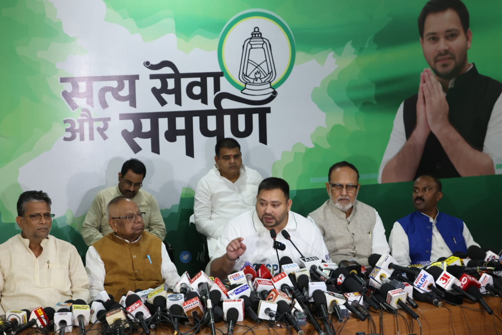 नेता प्रतिपक्ष तेजस्वी प्रसाद यादव ने संवाददाता सम्मेलन को संबोधित करते हुए कहा कि बस बहुत हुआ, अब बिहार बदनाम नहीं होगा बल्कि देश-दुनिया में बदलाव का वाहक बनेगा। सामाजिक न्याय के बाद बिहार अब आर्थिक न्याय का गवाह बनेगा। बिहार में अब नौकरी का नव-जागरण होगा।