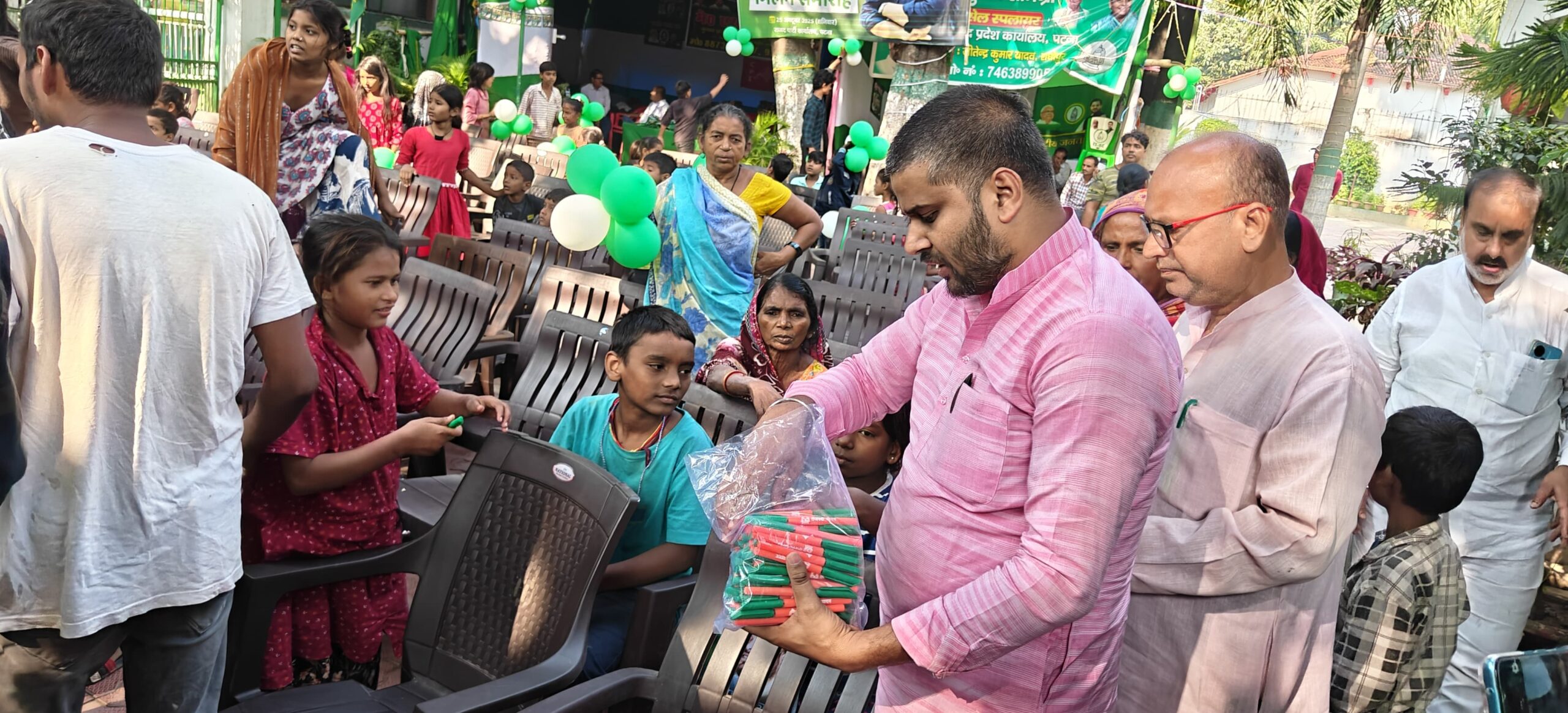 इस अवसर पर गरीब बच्चों के बीच काॅपी, कलम, मिठाई एवं टाॅफी का वितरण किया गया तथा वहां उपस्थित नेताओं ने यह बताने का कार्य किया कि राष्ट्रीय जनता दल पढ़ाई, लिखाई, दवाई, कमाई, सिंचाई एवं कार्रवाई पर विश्वास करती है और देश के गरीब बच्चों को शिक्षित बनाकर अग्रणी लाईन में लाने का काम राष्ट्रीय जनता दल कर रही है।
