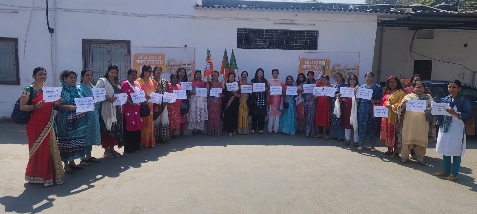 इस दौरान महिला मोर्चा की कार्यकर्ताओं ने कांग्रेस पार्टी और सांसद राहुल गांधी के खिलाफ जमकर नारेबाजी की और उनका पुतला दहन किया। भाजपा महिला मोर्चा की महिलाएं बड़ी संख्या में प्रदेश कार्यालय से निकलीं और राहुल गांधी के खिलाफ नारेबाजी की। इस दौरान सभी कार्यकर्ताओं ने कांग्रेस और राहुल गांधी के विरोध में लिखे नारे वाली तख्तियां लिए हुए थे और उनके खिलाफ जमकर नारेबाजी कर रहे थे।