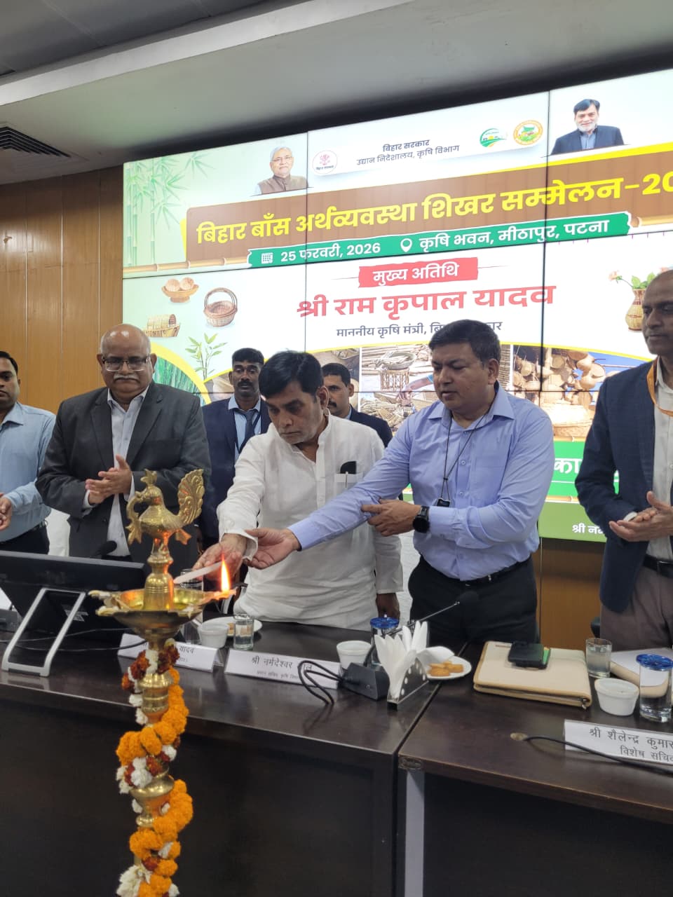 राज्य में बांस की खेती करने वाले किसानों और इससे जुड़े कारीगरों की आय बढ़ाने के लिए बुधवार को मीठापुर अवस्थित कृषि भवन में बिहार बांस अर्थव्यवस्था शिखर सम्मेलन 2026 का आयोजन किया गया। इसका उद्घाटन करते हुए कृषि मंत्री राम कृपाल यादव ने कहा कि बांस की खेती को बढ़ावा देने के लिए प्रशिक्षण, उपकरण और बाजार आदि जरूरतों को पूरा किया जाएगा। बांस से बने उत्पाद किसानों और कारीगरों को अच्छा मूल्य दिलाने की क्षमता रखते हैं। इसलिए इसकी खेती के लिए किसानों को जरूरी सहयोग और प्रोत्साहन दिया जाएगा।