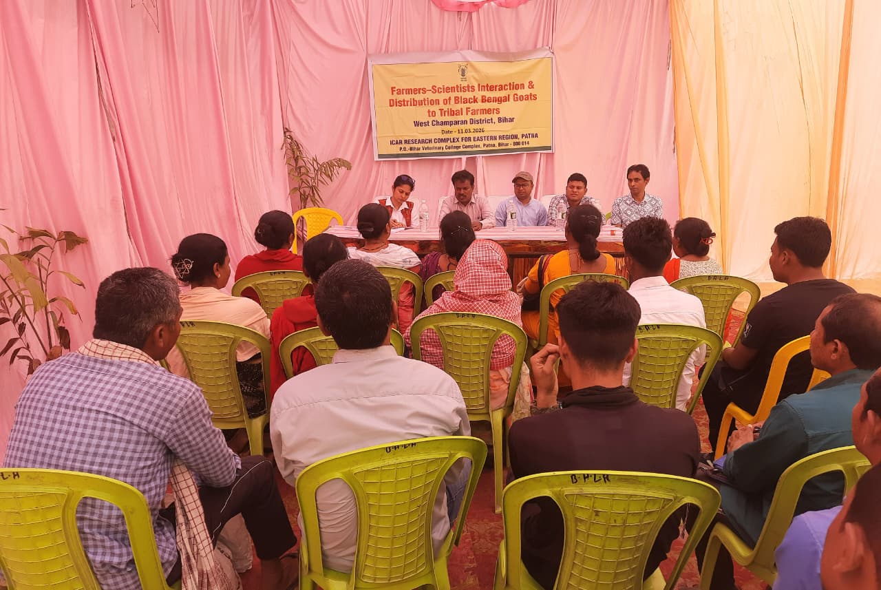 भारतीय कृषि अनुसंधान परिषद का पूर्वी अनुसंधान परिसर, पटना के वैज्ञानिकों द्वारा बेतिया में किसानों की आय बढ़ाने के उद्देश्य से बकरी पालन विषय पर एक दिवसीय किसान–वैज्ञानिक संवाद का आयोजन किया गया। यह कार्यक्रम संस्थान के निदेशक डॉ. अनुप दास के मार्गदर्शन में आयोजित किया गया, जिसका मुख्य उद्देश्य किसानों के बीच बकरी पालन के प्रति जागरूकता बढ़ाकर उनकी आय में वृद्धि करना था। यह कार्यक्रम संस्थान के अनुसूचित जनजाति उपयोजना के अंतर्गत आयोजित किया गया।