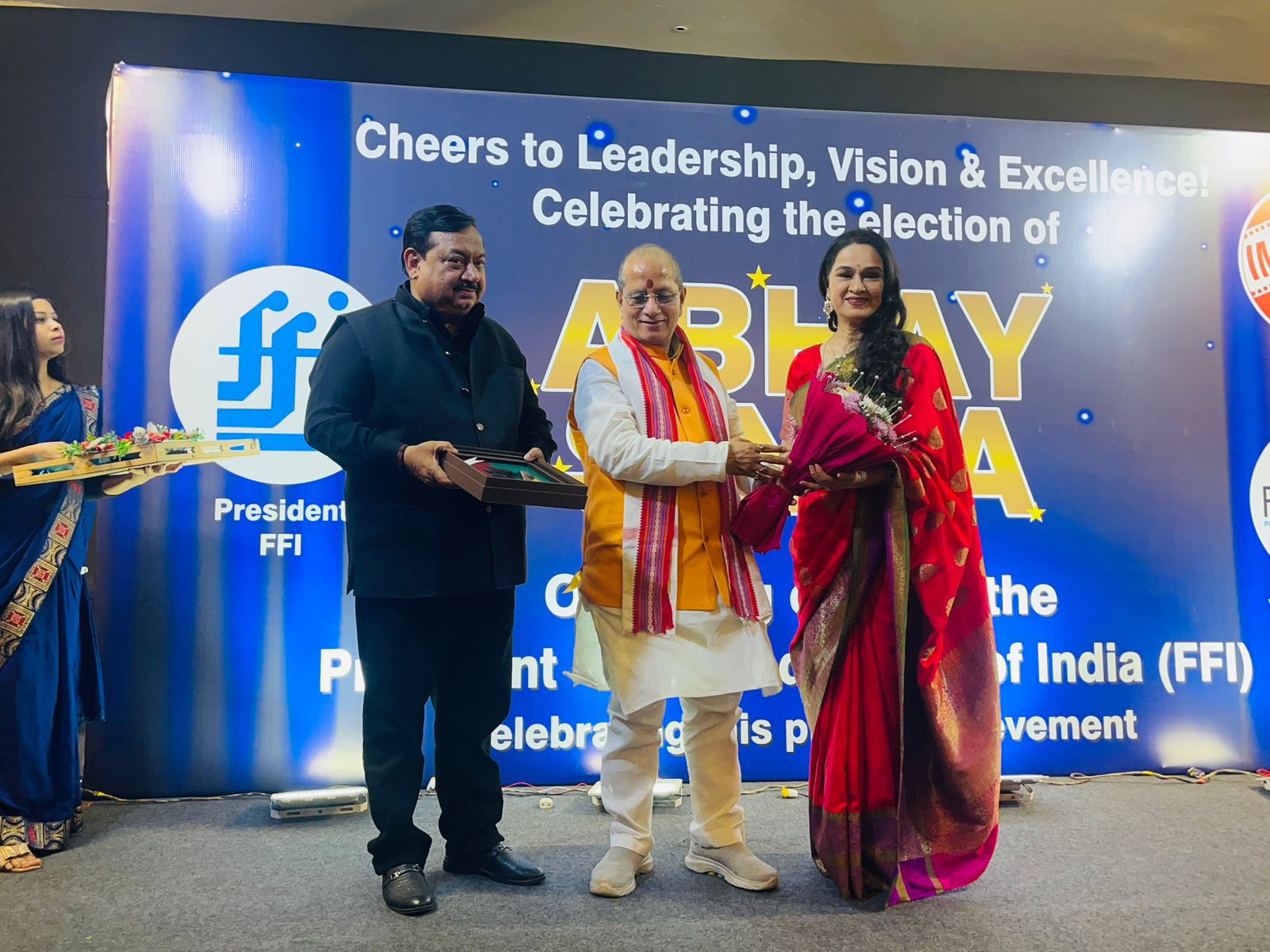भारतीय फिल्म उद्योग की शीर्ष संस्था फिल्म फेडरेशन ऑफ इंडिया (एफएफआई) के अध्यक्ष पद पर निर्वाचित होने के बाद फिल्म निर्माता अभय सिन्हा का सम्मान कल पटना के प्रतिष्ठित होटल मौर्य में भव्य सम्मान समारोह का आयोजन किया गया। इस समारोह में बिहार के उपमुख्यमंत्री सह राजस्व एवं भूमि सुधार मंत्री विजय कुमार सिन्हा, विधायक संजीव चौरसिया और राजू कुमार सिंह, भाजपा बिहार के प्रदेश अध्यक्ष संजय सरावगी, बिहार सरकार के अधिकारी प्रणव कुमार, अमित लोढ़ा और गंगा कुमार के साथ प्रसिद्ध अभिनेत्री पद्मिनी कोल्हापुरे और फिल्म फेडरेशन ऑफ इंडिया के उपाध्यक्ष पटना निवासी निशांत उज्जवल भी शामिल हुए। कार्यक्रम में एफएफआई के उपाध्यक्ष चुने जाने पर निशांत उज्जवल को भी सम्मानित किया गया।