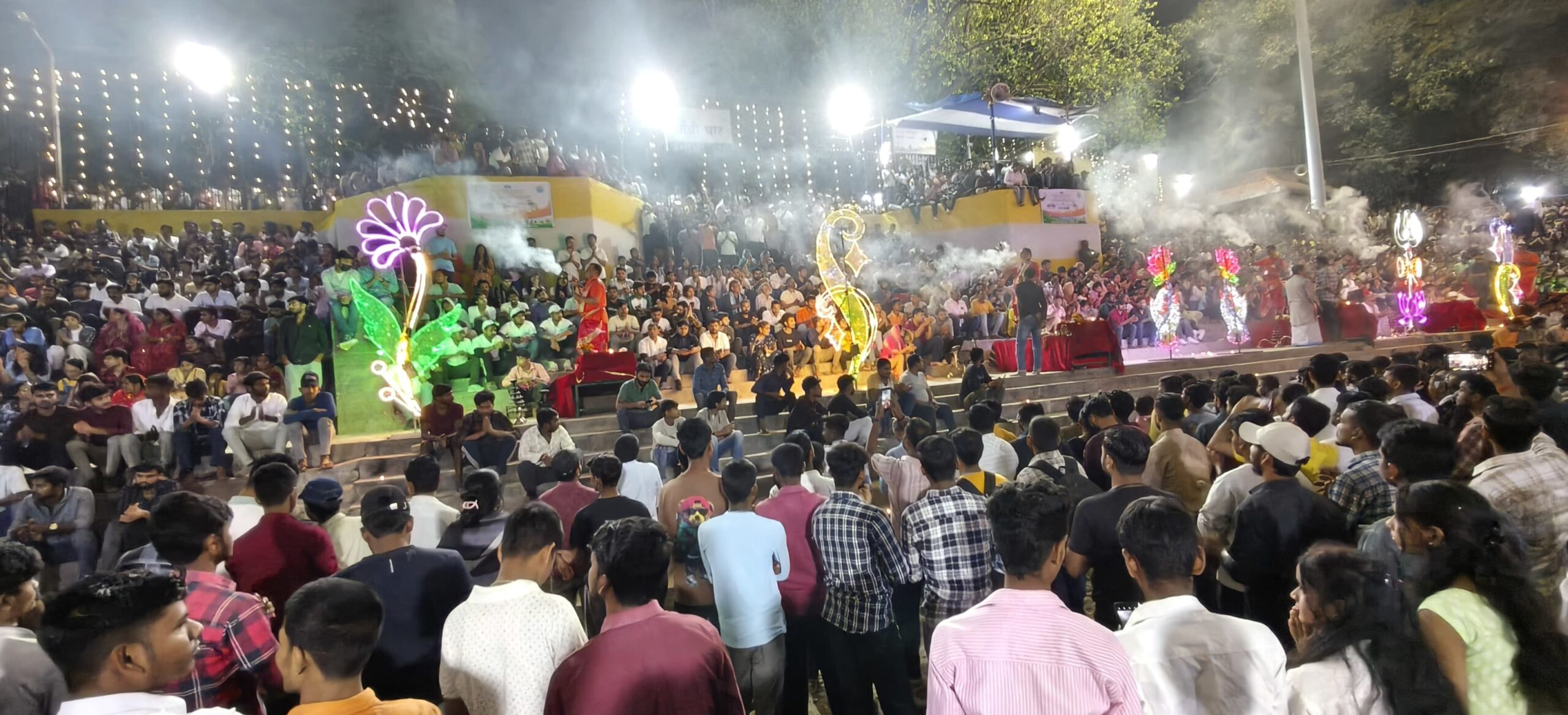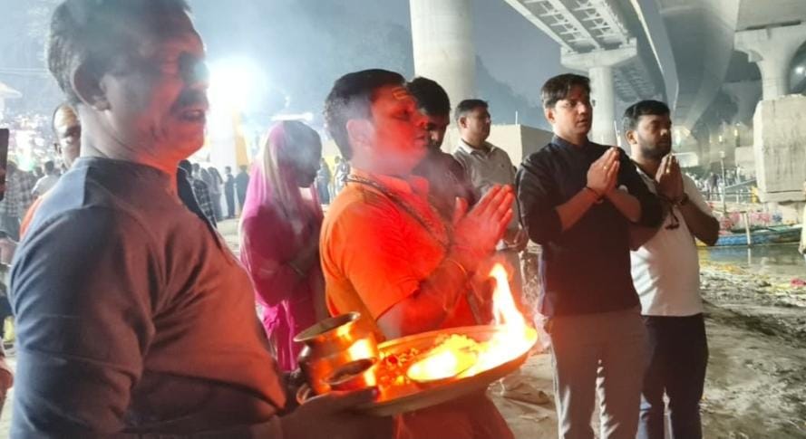 कार्यक्रम की शुरुआत गंगा पूजन के साथ हुई, जिसमें विधिवत मंत्रोच्चार एवं श्रद्धा के साथ मां गंगा की आराधना की गई। इसके पश्चात सैकड़ों दीपों को प्रज्वलित कर घाट परिसर को अलौकिक प्रकाश से जगमगा दिया गया, जिससे पूरा वातावरण भक्तिमय और आकर्षक हो उठा। गंगा आरती के दौरान उपस्थित जनसमूह ने एक स्वर में गंगा मैया के जयकारे लगाए, जिससे माहौल आध्यात्मिक ऊर्जा से भर गया।