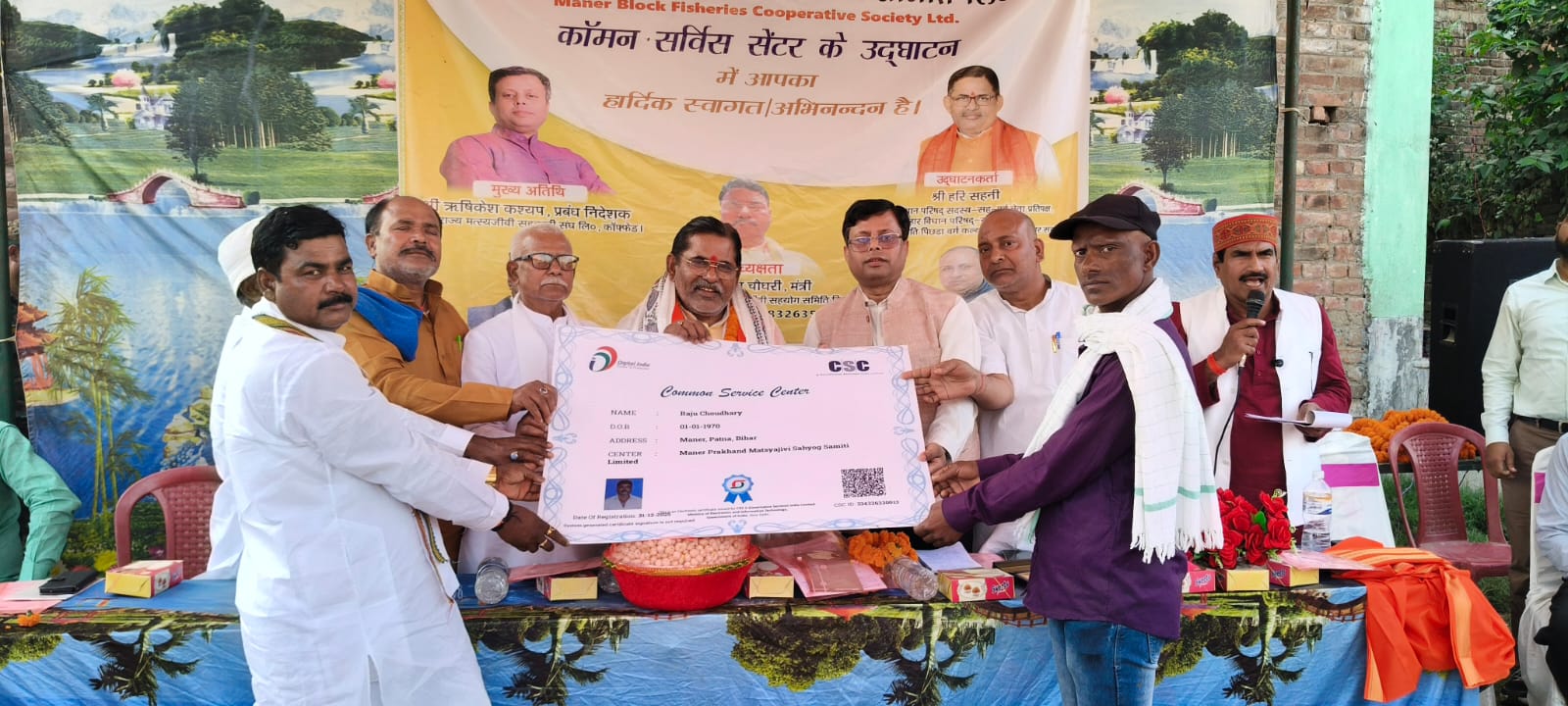 कार्यक्रम के दौरान अतिथियों द्वारा समिति को कॉमन सर्विस सेंटर का प्रमाण-पत्र भी प्रदान किया गया। इस अवसर पर बड़ी संख्या में स्थानीय मत्स्यजीवी, किसान, युवा एवं सामाजिक कार्यकर्ता उपस्थित रहे, जिन्होंने इस पहल का स्वागत करते हुए इसे क्षेत्र के समग्र विकास की दिशा में एक मील का पत्थर बताया।
