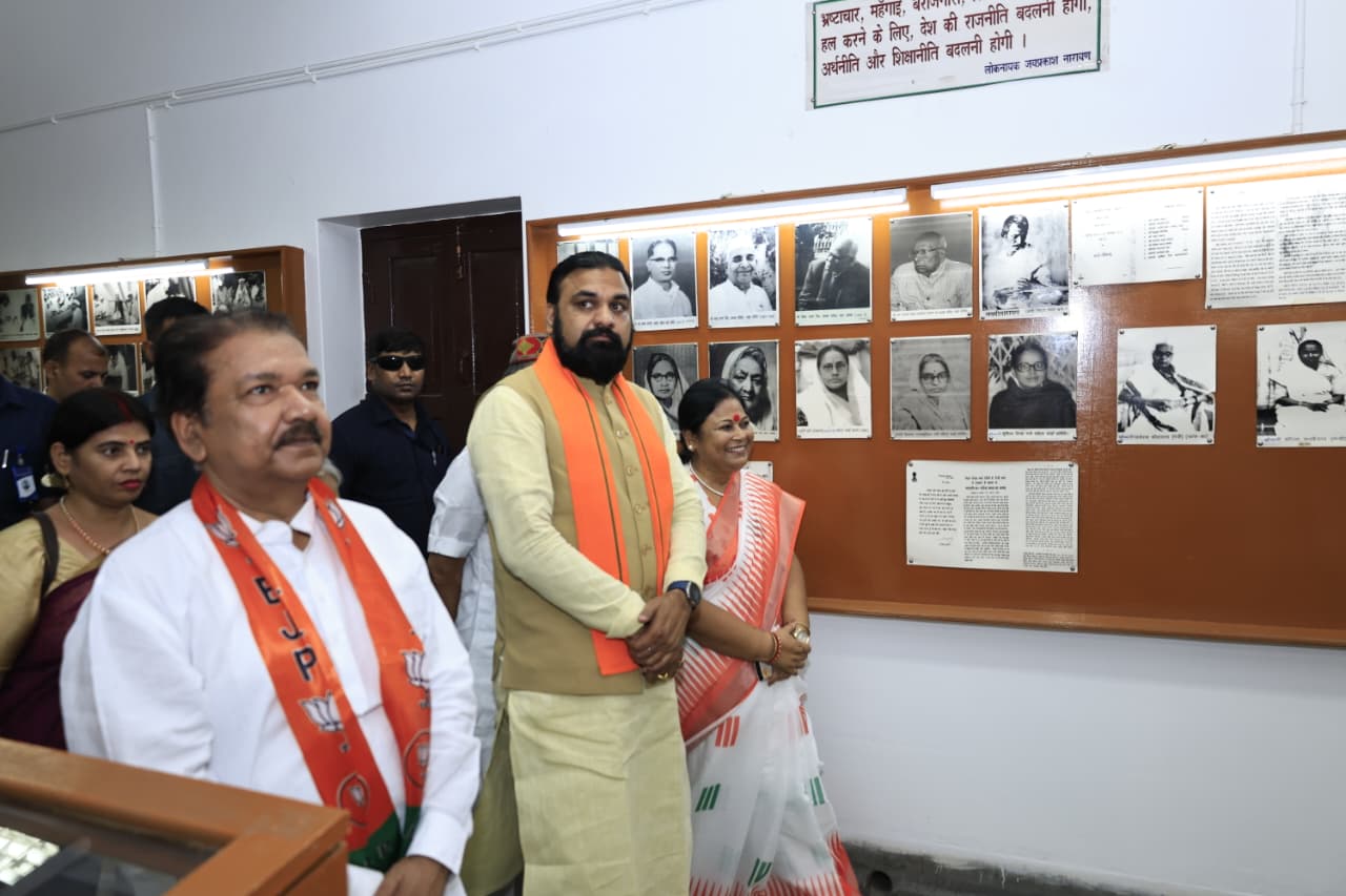 मुख्यमंत्री श्री सम्राट चौधरी ने आज कदमकुआं स्थित लोकनायक जयप्रकाश नारायण जी के आवास (महिला चरखा समिति) परिसर में स्थापित लोकनायक जयप्रकाश नारायण एवं उनकी धर्मपत्नी स्व० प्रभावती देवी की प्रतिमा पर माल्यार्पण कर उन्हें नमन किया। इस दौरान मुख्यमंत्री ने महिला चरखा समिति का निरीक्षण किया। निरीक्षण के दौरान मुख्यमंत्री ने जयप्रकाश अध्ययन एवं शोध केंद्र, प्रभावती स्मृति कक्ष, शयन कक्ष, सम्पूर्ण क्रांति सभागार आदि का जायजा लिया। मुख्यमंत्री ने महिला चरखा समिति के फोटो गैलरी कक्ष में लोकनायक जयप्रकाश नारायण के प्रारंभिक जीवन, स्वतंत्रता आंदोलन एवं 1974 के जे०पी० आंदोलन (सम्पूर्ण क्रांति) से संबंधित लगाई गई तस्वीरों का अवलोकन किया। मुख्यमंत्री ने लोकनायक जयप्रकाश नारायण की धर्मपत्नी एवं महिला चरखा समिति की संस्थापिका स्व० प्रभावती देवी के जीवन से जुड़ी फोटो प्रदर्शनी का भी अवलोकन किया।
