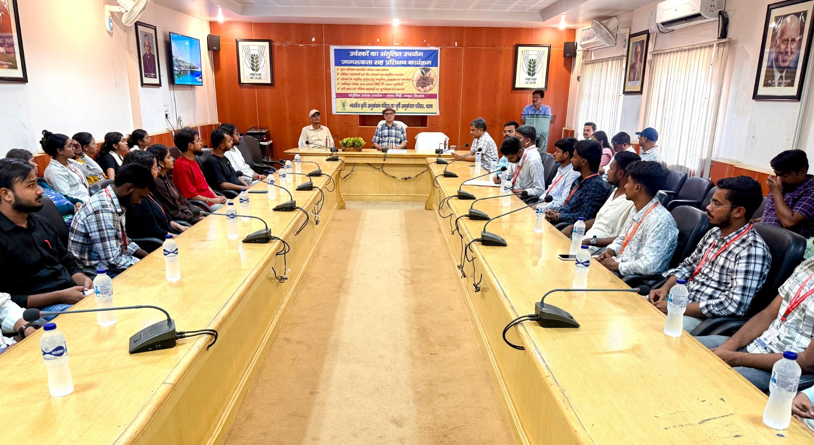 भारतीय कृषि अनुसंधान परिषद का पूर्वी अनुसंधान परिसर, पटना में दिनांक 17 अप्रैल, 2026 को गोपाल नारायण सिंह विश्वविद्यालय, रोहतास के बी.एससी. (कृषि) के 42 विद्यार्थियों के लिए प्रशिक्षण-सह-प्रक्षेत्र भ्रमण कार्यक्रम का आयोजन किया गया। इस अवसर पर विद्यार्थियों ने संस्थान में संचालित विभिन्न अनुसंधान एवं प्रसार गतिविधियों का अवलोकन किया तथा उर्वरकों के संतुलित उपयोग के संबंध में व्यावहारिक जानकारी प्राप्त की।