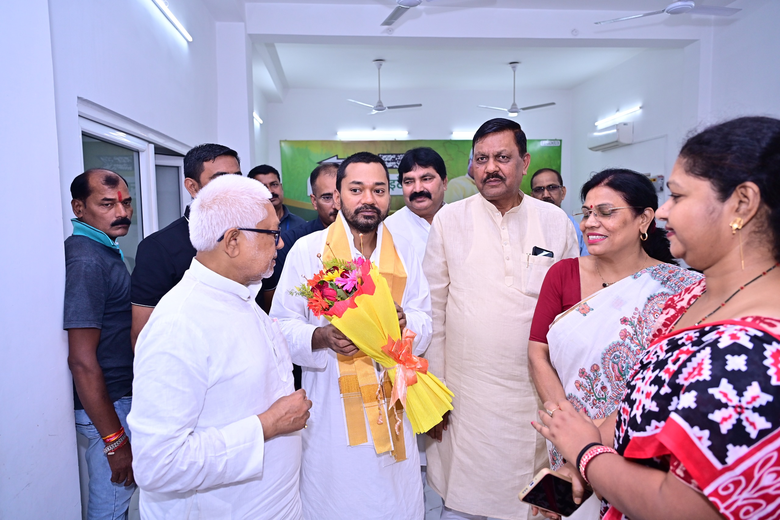 इससे पहले पार्टी कार्यालय पहुंचने पर कार्यकर्ताओं ने श्री निशांत कुमार का जोरदार स्वागत किया एवं उनके समर्थन में जमकर नारे लगाए। श्री निशांत कुमार ने भी एक-एक कर सबों से मुलाकात की एवं उनके विचारों को सुना। कार्यकर्ताओं के साथ बैठक के दौरान उन्होंने कहा कि सबों को मिलकर माननीय श्री नीतीश कुमार जी के कामों को आगे बढ़़़ाना है और उनके द्वारा सुझाए गए रास्तों पर चलकर बिहार को विकास के शीर्ष पर पहुंचाना है। उन्होंने पार्टी की नीतियों एवं उपलब्धियों को जन-जन तक प्रभावी ढंग से पहुँचाने पर बल दिया।