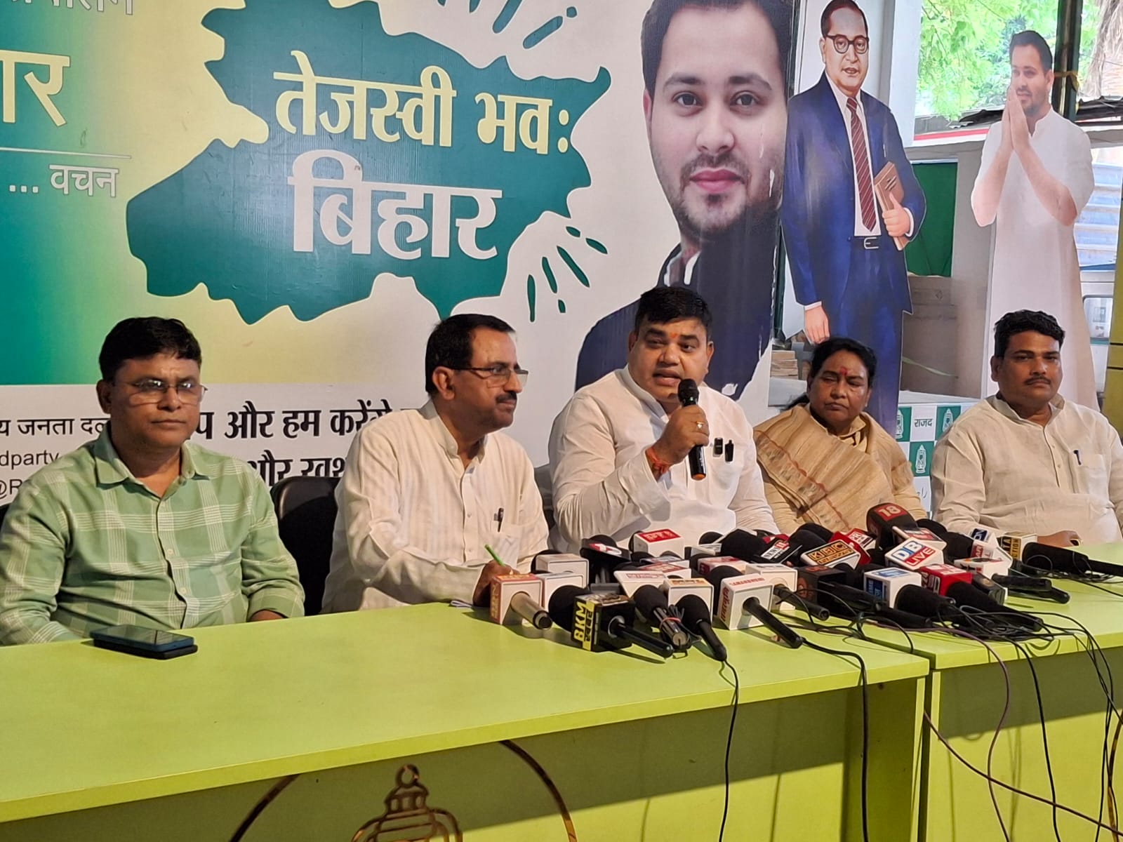 बिहार प्रदेश राष्ट्रीय जनता दल के राज्य कार्यालय के कर्पूरी सभागार में बिहार प्रदेश राष्ट्रीय जनता दल के मुख्य प्रवक्ता श्री शक्ति सिंह यादव ने प्रदेश प्रवक्ता सह विधान पार्षद डॉ उर्मिला ठाकुर, एजाज अहमद, उत्पल बल्लभ, अरुण कुमार यादव एवं अति पिछड़ा प्रकोष्ठ के प्रदेश प्रवक्ता उपेंद्र चंद्रवंशी के साथ संयुक्त रूप से संवाददाता सम्मेलन को संबोधित करते हुए कहा कि नारी वंदन के नाम पर भाजपा और एनडीए ने हैडलाइन मैनेजमेंट के लिए जो आक्रोश मार्च निकाला था उससे भाजपा का पोल खुल गया और एनडीए के अंदर एकता भी नहीं दिखी और जीविका दीदी को बहलावे में रखकर बुलाया गया भीड़ जुटाने के लिए इनका इस्तेमाल किया गया जो कहीं से भी उचित नहीं है। महिला आक्रोश के नाम पर प्रतिबंधक्षेत्र कारगिल चौक के सड़क को घेर कर बीच सड़क पर मंच लगाकर भाजपा ने न सिर्फ सट्टा का दुरुपयोग किया बल्कि कानून का भी उल्लंघन किया और यह दिखा दिया की सत्ता के रौब में उनके द्वारा कुछ भी किया जा सकता है।