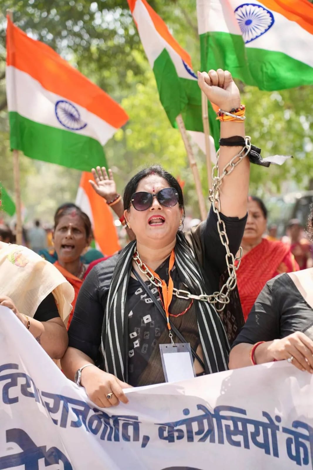 भाजपा महिला मोर्चा द्वारा आयोजित ‘जन आक्रोश महिला सम्मेलन’ में आज भीषण गर्मी के बावजूद बिहार के कोने-कोने से महिलाएं पटना पहुंचीं और अपने अधिकारों की मांग को लेकर मजबूती से आवाज उठाई। लोकसभा में नारी शक्ति वंदन अधिनियम के पारित नहीं होने से आक्रोशित महिलाएं गांधी मैदान पहुंचीं और इसके लिए विपक्षी दलों को जिम्मेदार ठहराते हुए कांग्रेस, राजद सहित विपक्ष के सभी दलों को निशाने पर लिया।