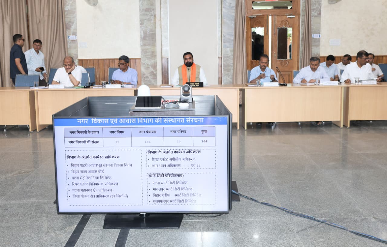 मुख्यमंत्री श्री सम्राट चौधरी ने आज मुख्यमंत्री सचिवालय स्थित ‘संवाद’ में नगर विकास एवं आवास विभाग, पंचायती राज विभाग तथा पर्यटन विभाग की समीक्षा बैठक की। मुख्यमंत्री ने अधिकारियों को कार्यों में तेजी और पारदर्शिता सुनिश्चित करने का निर्देश दिया।
